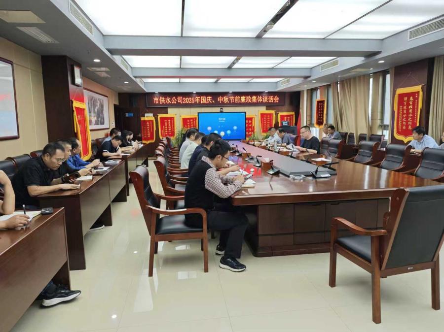 為深入貫徹落實中央八項規(guī)定精神,筑牢節(jié)日期間廉潔防線,9月29日,淮北市供水有限責任公司組織召開2025年中秋國慶廉潔過節(jié)集體談話會。會議由公司黨支部副書記、總經(jīng)理于洋主持,班子成員及全體中層干部參加。
